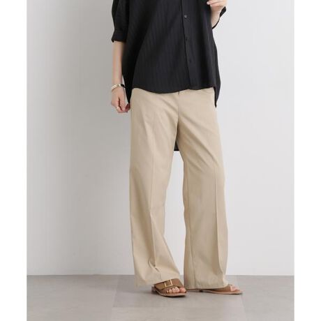 エバークリース加工を施したセンタープレスパンツ。ノータック仕様で腰まわりをすっきりと見せ、ストレートシルエットで全体をきれいめに仕上げた一本。通勤スタイルにぴったりなきちんと感があり、女性らしい上品なコーディネートに活躍します。