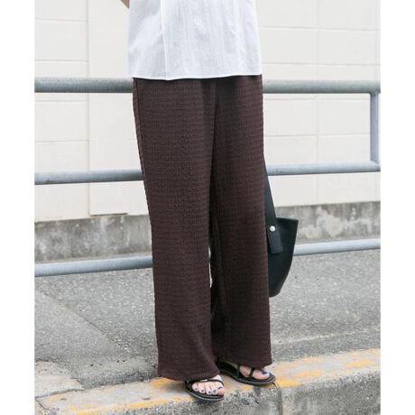 凹凸感のあるカットヨウリュウ素材が魅力のイージーパンツは、さらっとした肌離れの良さで暑い季節も快適に過ごせる一本。UVカットや接触冷感機能付きで、日差しの強い日でも涼しく安心して着用できます。さらに洗濯機で洗えるイージーケア仕様も嬉しいポイント。ウエストは総ゴムでストレスフリーな履き心地ながら、表面感のある素材がコーディネートに奥行きをプラスし、ラフすぎない印象に。オンオフ問わず活躍する、機能性とデザイン性を兼ね備えた優秀パンツです。