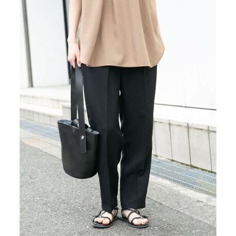 接触冷感・UVカット・イージーケアの3つの機能を備えた、夏に頼れるSMOOTH LINEN TOUCHパンツ。ひんやりとした肌触りで暑い日も快適に過ごせて、紫外線対策も叶う優秀アイテムです。シワになりにくくお手入れも簡単なので、デイリーに気兼ねなく着回せるのも嬉しいポイント。ウエストはゴム仕様でリラックスした穿き心地ながら、センタープレス風のデザインがきちんと感をプラスし、ラフになりすぎない仕上がりに。オンオフ問わず活躍する、機能性と美シルエットを両立した一本です。