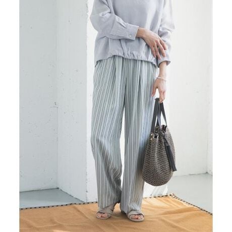 ランダムなストライプ柄が目を引くイージーパンツはデイリーコーデに取り入れやすいデザイン。