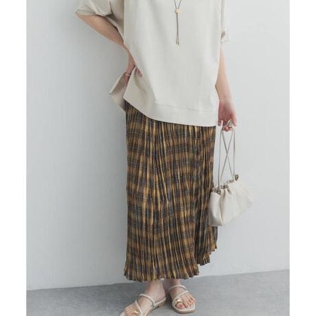 オリジナルチェック地で仕立てた、ワッシャー加工入りのプリーツスカート。