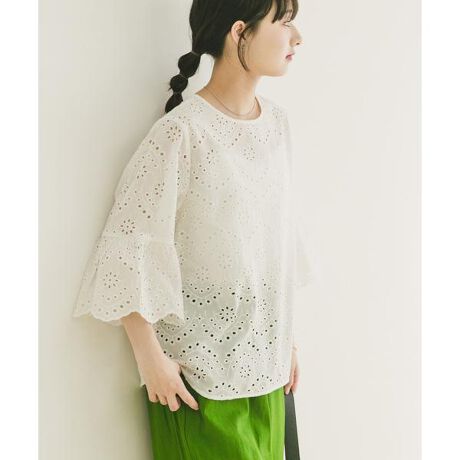 スカラップ袖で魅せる、大人のレースブラウス。