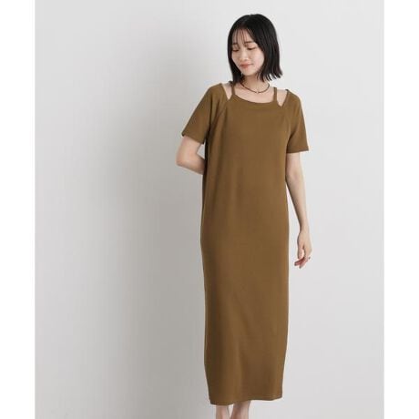 一枚でレイヤードスタイルが完成する、デザインカットワンピース。ネックの重ね着風ディテールと肩のカッティングが抜け感を演出し、ヘルシーで大人っぽい印象に。さらっと着るだけでこなれたスタイリングが叶う一枚です。