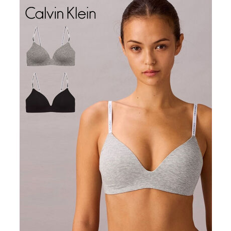 ワイヤーフリーのノンストレスなブラレット。カップにしっかりと厚みがあり、安心の着用感です。ワイヤーなしでもしっかりと底上げし、美しいバストラインを演出します。デイリー使いのしやすい無地のタイプで、細身の肩紐にはCalvin Kleinのロゴをオン。肌触りの良い、コットンレーヨンのジャージーを使用しました。
