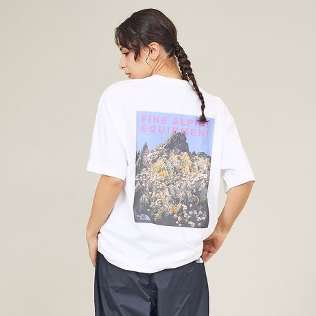 ヨセミテの岩稜と、岩場に咲く花々のグラフィックを背面にあしらった半袖Tシャツ。