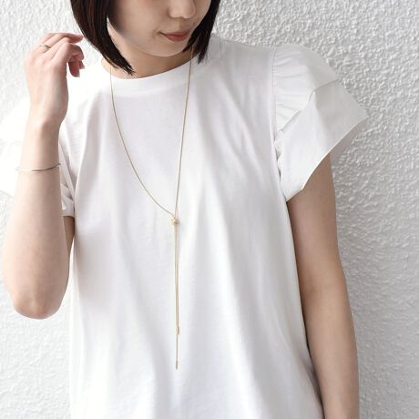 カジュアルになりがちなTシャツですが、袖に施したフリルで上品さと大人な可愛らしさのある一枚に仕上げました。