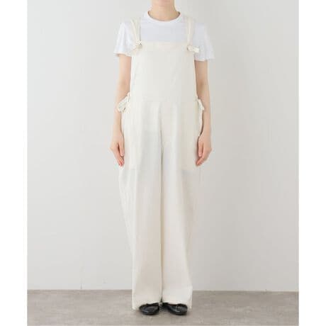 ・綿とレーヨン素材を使用した、軽やかな着心地のサロペット。