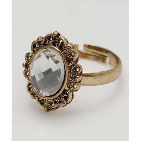 [型番:LKXZ6790-2026]カットビジューがきらめく、クラシカルなフレームデザインのリング。アンティーク調の台座が上品な雰囲気を演出し、指先にヴィンテージライクな華やぎを添えます。