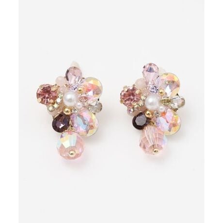 [型番:LKXZ6781-2026]大小のパール風パーツとビジューが織りなす立体的なデザインが魅力のピアス。耳元にボリューム感と華やかさをプラスし、アンティーク調の色合いがコーデに深みを与えます。