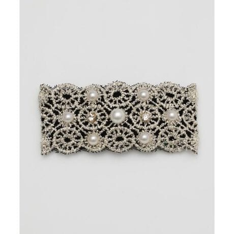 [型番:LKXZ6759-2026]繊細なレースにパールとビジューを散りばめた上品なヘアクリップ。程よい存在感がありながらも柔らかい印象で、まとめ髪やハーフアップにも映えるデザインです。