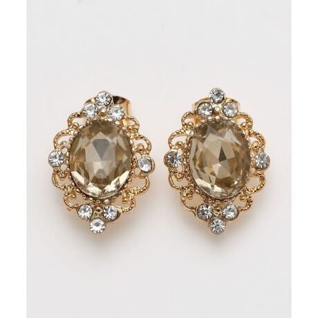 [型番:LKXZ6703-2026]クラシカルな装飾枠にビジューをあしらった上品なピアス。小ぶりながらも存在感があり、ヴィンテージ感のあるコーディネートにもよく合います。