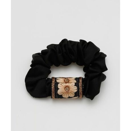 [型番:LKXZ6762-2026]レトロな花柄刺しゅうが目を引く上品デザインのシュシュタイプヘアゴム。シルク調のやわらかな生地が髪に優しくフィットし、まとめ髪や手首のアクセントに。