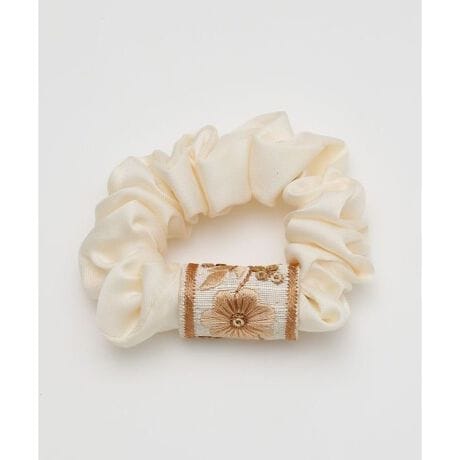 [型番:LKXZ6762-2026]レトロな花柄刺しゅうが目を引く上品デザインのシュシュタイプヘアゴム。シルク調のやわらかな生地が髪に優しくフィットし、まとめ髪や手首のアクセントに。