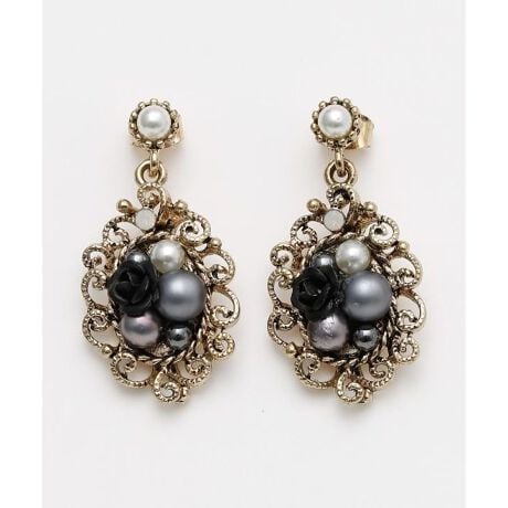[型番:LKXZ6707-2026]花のようなフォルムとビジューの輝きが印象的なピアス。華やかさの中にアンティーク感が漂い、コーディネートの主役としても映える存在感です。