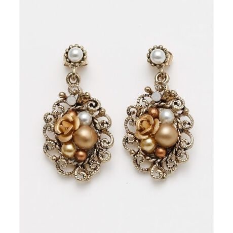 [型番:LKXZ6707-2026]花のようなフォルムとビジューの輝きが印象的なピアス。華やかさの中にアンティーク感が漂い、コーディネートの主役としても映える存在感です。