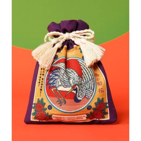[型番:7IKP6204-2026]香図浪漫(こうずろまん)をテーマに、大正レトロなマッチ香をモチーフにした巾着ポーチ。縁起の良い生き物と花を鮮やかな配色で組み合わせました。小物をすっきりまとめられる使い勝手の良い形に、タッセルがさりげない彩りを添えます。贈り物にもおすすめの和小物です。
