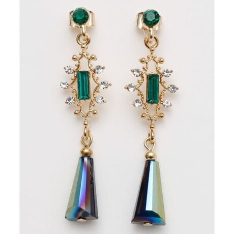 [型番:LKXZ6704-2026]揺れるティアドロップ型のビジューが目を引く華やかなピアス。ロングシルエットが顔まわりをすっきり見せ、ドレッシーな装いにもぴったりです。