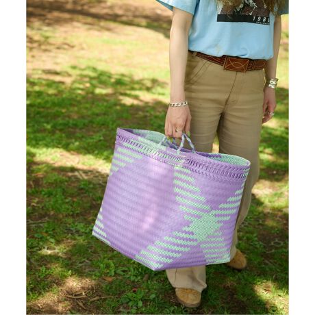 現地の職人が一本一本編み上げたポリプロピレン素材は、軽量で水や汚れにも強く、日常使いに最適。