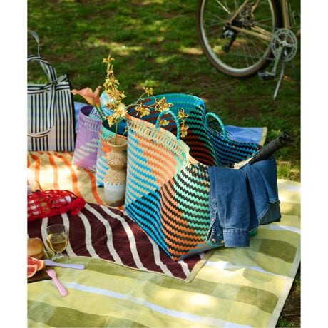 現地の職人が一本一本編み上げたポリプロピレン素材は、軽量で水や汚れにも強く、日常使いに最適。
