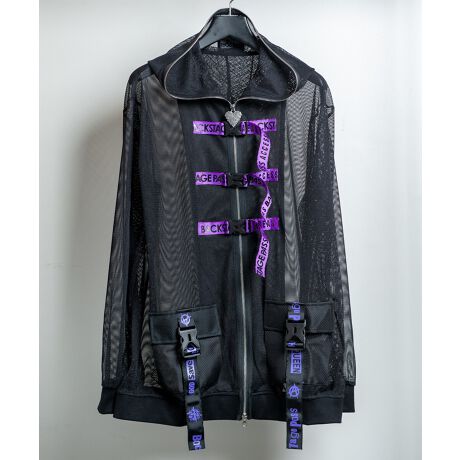 BACKSTAGE PASS(バックステージパス) のTRIPLET-LOGO(トリプレット-ロゴ)ロゴバックル メッシュ ジップアップパーカーです。