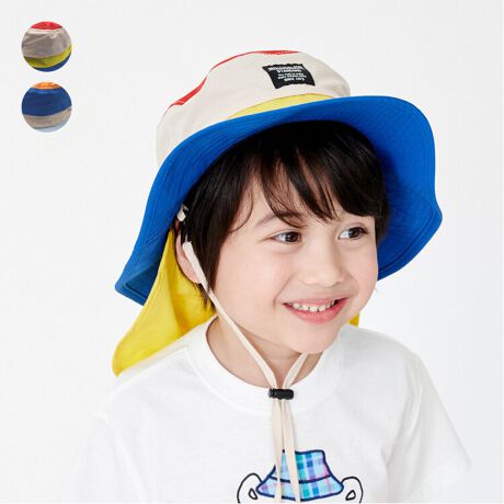 カラフルなカラー切替デザインのハット、帽子。日除けのたれ部分には保冷剤を入れるポケット付き。UVカット加工で日焼けを防止。撥水、はっ水加工なのでちょっとした水遊びやアウトドアにも最適!内側のバンドに汗をすばやく吸収して乾かす吸水速乾素材を使用しています!機能性もあり、夏のお出かけやレジャーにオススメなアイテム。【アイテム】雑貨 カジュアル お洒落 オシャレ かっこいい かわいい 可愛い 普段着 デイリーウェア お出かけ 子ども こども 男児 男の子 ボーイズ キッズ ベビーサイズ トドラーサイズ 幼稚園 保育園 小学校 通園 通学 小学生 遠足 旅行 2026年春夏物新作 丸高衣料 小物 マルチカラー ムージョンジョン