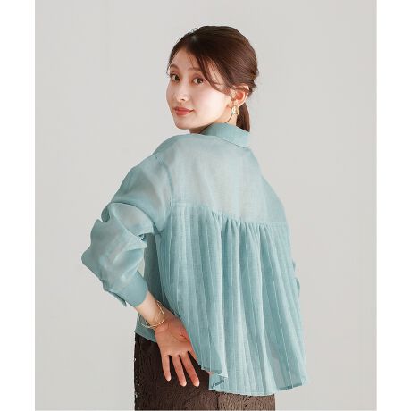 【 バックコンシャスで魅せる 】 シアーリネンライク・バックプリーツブラウス