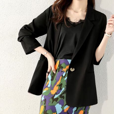 七分袖にシャーリングを施したデザインが特徴のジャケットです。