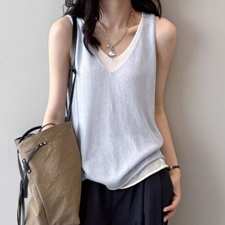 Vネックノースリーブニットトップス