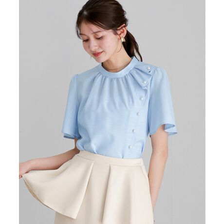ブラウス 半袖ブラウス パールブラウス フリルブラウス きれいめブラウス オフィスコーデ 夏ブラウス レディーストップス 通勤コーデ 上品トップス