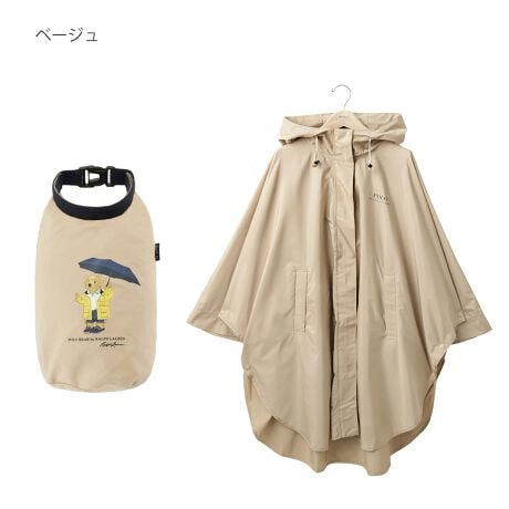 【C-zeroはっ水】レインコート ポンチョ 収納袋付き ポロベア ワンポイント 無地 ミリタリー風
