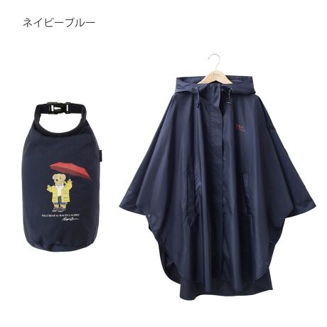 【C-zeroはっ水】レインコート ポンチョ 収納袋付き ポロベア ワンポイント 無地 ミリタリー風