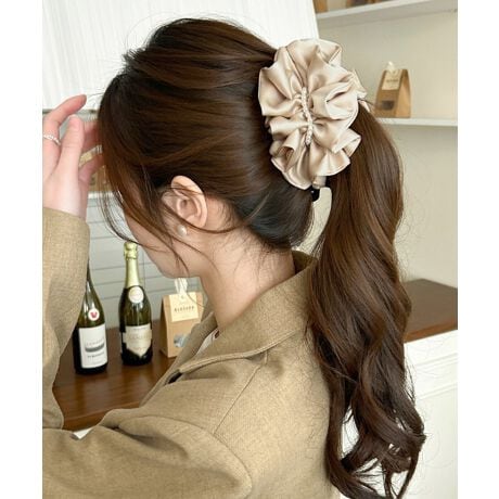 パール×サテンのボリューム感が上品なバナナクリップ。