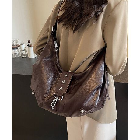 ヴィンテージライクな風合いのレザーに星型スタッズがアクセントを添える、大容量ホーボーバッグ。