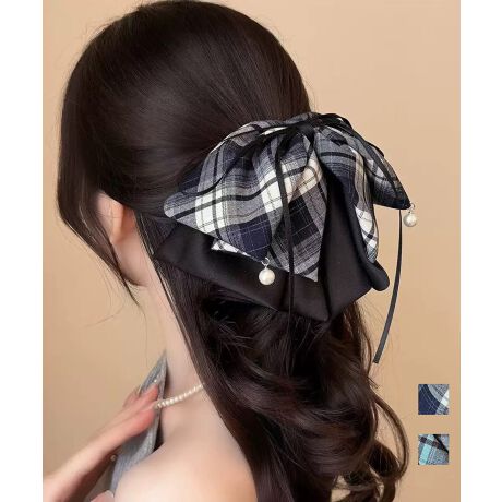 チェック柄×ブラックリボンのヘアアクセサリー。