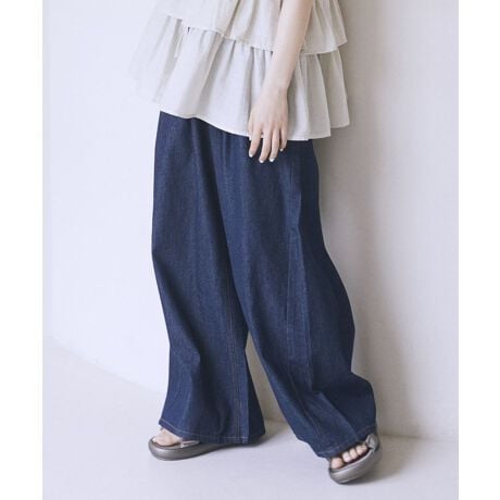 ラクしてきれい見え、大人のワイドデニムゆとりのあるシルエットにタックデザインをプラスすることで、カジュアルながらも上品な印象に仕上がります。気になる腰回りを自然にカバーしつつ、縦のラインを強調してスタイルアップ効果も期待できます。後ろゴム仕様のウエストはフィット感があり、ストレスフリーなはき心地です。トップスをインしてもきれいに決まり、コーディネートの幅が広がります。大人のカジュアルスタイルにぴったりで、デイリーからお出かけまで幅広く活躍してくれる一着です。透け感[なし]