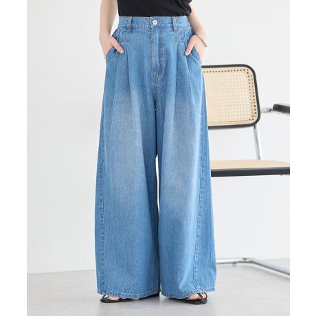 ラクしてきれい見え、大人のワイドデニムゆとりのあるシルエットにタックデザインをプラスすることで、カジュアルながらも上品な印象に仕上がります。気になる腰回りを自然にカバーしつつ、縦のラインを強調してスタイルアップ効果も期待できます。後ろゴム仕様のウエストはフィット感があり、ストレスフリーなはき心地です。トップスをインしてもきれいに決まり、コーディネートの幅が広がります。大人のカジュアルスタイルにぴったりで、デイリーからお出かけまで幅広く活躍してくれる一着です。透け感[なし]