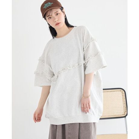 さりげないフリルで叶える大人の可愛さやわらかなミニ裏毛素材を使用した、着心地の良いプルオーバーです。軽やかで肌あたりがやさしく、デイリーに取り入れやすいのが魅力です。フロントから袖にかけて施されたフリルデザインが、甘さを抑えた上品なアクセントとなり、大人らしい可愛らしさを演出します。ゆったりとしたシルエットでリラックス感がありながら、自然に体型カバーも叶えてくれるため安心して着用できます。パンツにもスカートにも合わせやすく、カジュアルからきれいめまで幅広いコーディネートに対応します。日常使いからお出かけまで活躍する、着回し力の高い一枚です。透け感[なし]
