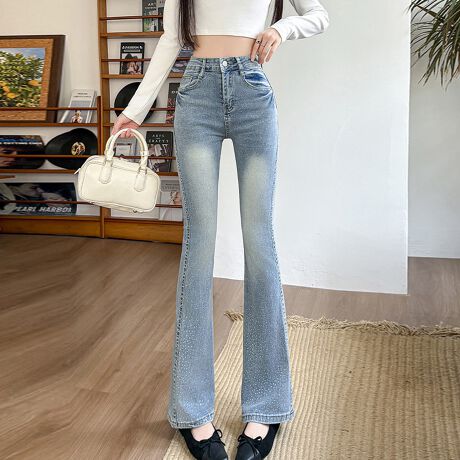 脚のラインをきれいに見せるフレアシルエットが魅力のデニムパンツ。
