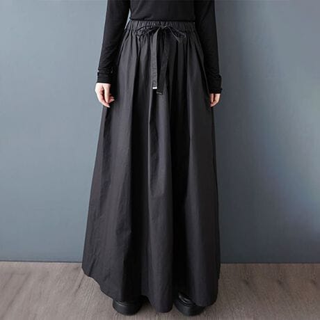 ウエストにリボンをあしらったデザインがアクセントになるロングスカート。