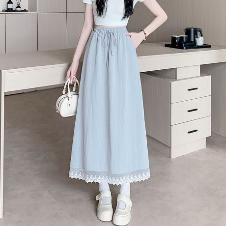 裾にはレースがあしらわれており、シンプルなシルエットに上品なアクセントを加えています。