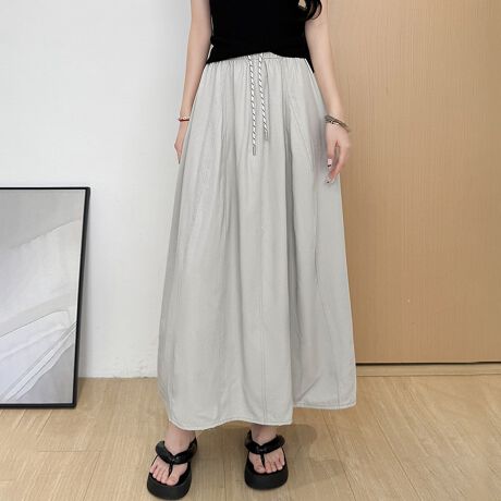 ウエストにドローストリングをあしらったロングスカート。