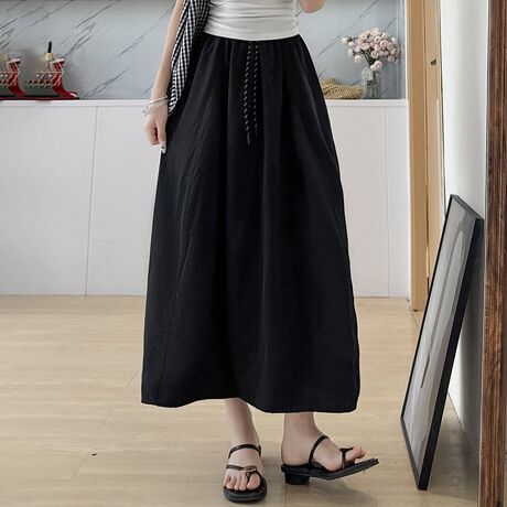 ウエストにドローストリングをあしらったロングスカート。