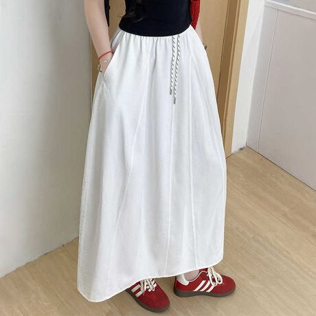 ウエストにドローストリングをあしらったロングスカート。