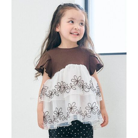 apres les cours(アプレレクール)の半袖Tシャツ「チュール刺繍ドッキングトップス」は、ナチュラルなスタイルにさりげなくデザインをプラスしたおしゃれアイテム*