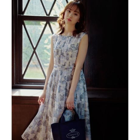 柔らかな女性らしさを引き立てる、上品なフィット&フレアドレス。ウエスト切り替えによって自然にシェイプされたシルエットは、着るだけでスタイルアップを叶えます。タック入りのスカートは歩くたびに軽やかに揺れ、膝下丈のロングレングスが上品で落ち着いた印象を演出します。柄は、異なる表情を楽しめる2種類をご用意。一つは、淡い色彩で描かれたフラワープリント。やさしく華やかな花柄がワンピースのフェミニンさを引き立て、女性らしい柔らかさと透明感を演出します。デートやお出かけなど、特別感のあるシーンにもおすすめです。もう一つは、街並みと船をモチーフにしたストーリープリント。繊細な線画タッチと落ち着いた配色が、甘さを抑えた大人の雰囲気をプラス。フェミニンなシルエットに程よい知性と遊び心を添え、日常からきれいめなシーンまで幅広く活躍します。
