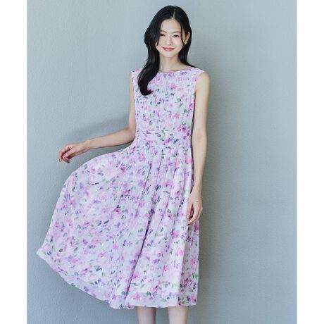 柔らかな女性らしさを引き立てる、上品なフィット&フレアドレス。ウエスト切り替えによって自然にシェイプされたシルエットは、着るだけでスタイルアップを叶えます。タック入りのスカートは歩くたびに軽やかに揺れ、膝下丈のロングレングスが上品で落ち着いた印象を演出します。柄は、異なる表情を楽しめる2種類をご用意。一つは、淡い色彩で描かれたフラワープリント。やさしく華やかな花柄がワンピースのフェミニンさを引き立て、女性らしい柔らかさと透明感を演出します。デートやお出かけなど、特別感のあるシーンにもおすすめです。もう一つは、街並みと船をモチーフにしたストーリープリント。繊細な線画タッチと落ち着いた配色が、甘さを抑えた大人の雰囲気をプラス。フェミニンなシルエットに程よい知性と遊び心を添え、日常からきれいめなシーンまで幅広く活躍します。