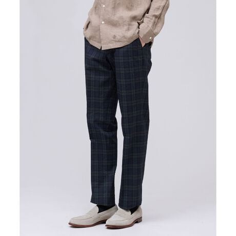 ■仕様ドレスタイプのスラックスも縫製する工場で仕立てています。ベルト部分はストレッチ性のある特別なインベルを使用し、生地の伸縮性に合わせて伸びる仕様になっています。すっきりとした見た目を叶えつつ、伸びる機能性をプラスしたハイクオリティな仕立てが特徴です。