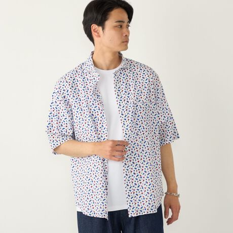 SHIPS Colors春夏の定番、凹凸のあるリップル素材に小ぶりな柄をプリントしたショートスリーブシャツ。