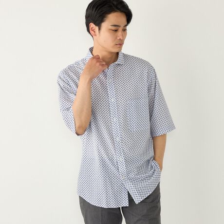 SHIPS Colors春夏の定番、凹凸のあるリップル素材に小ぶりな柄をプリントしたショートスリーブシャツ。