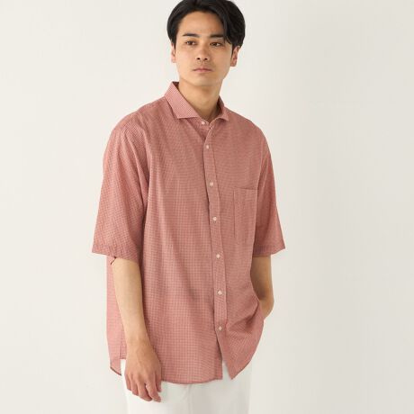 SHIPS Colors春夏の定番、凹凸のあるリップル素材に小ぶりな柄をプリントしたショートスリーブシャツ。